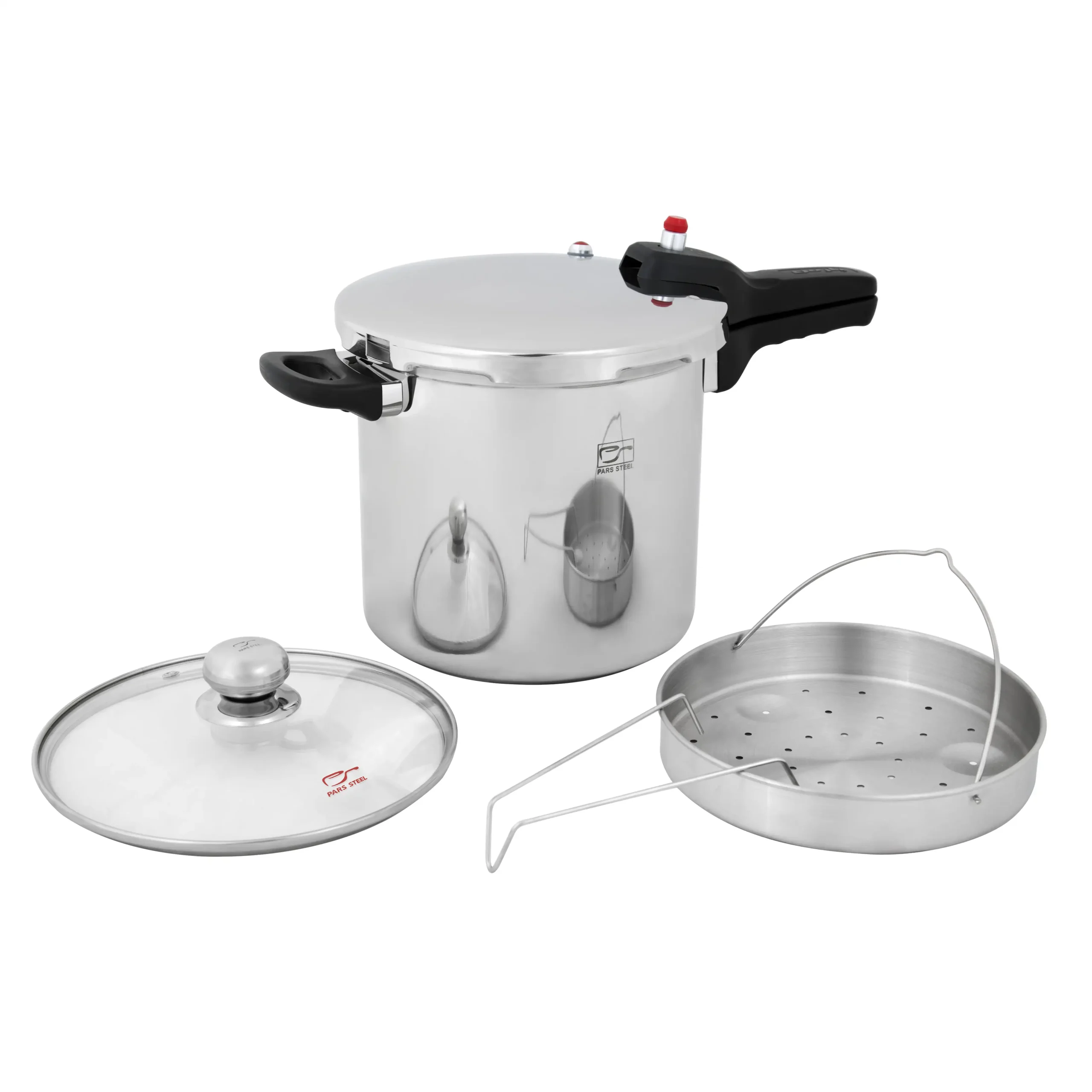 دیگ زودپز ۷ لیتری پارس استیل با در پیرکس و سبد بخارپز