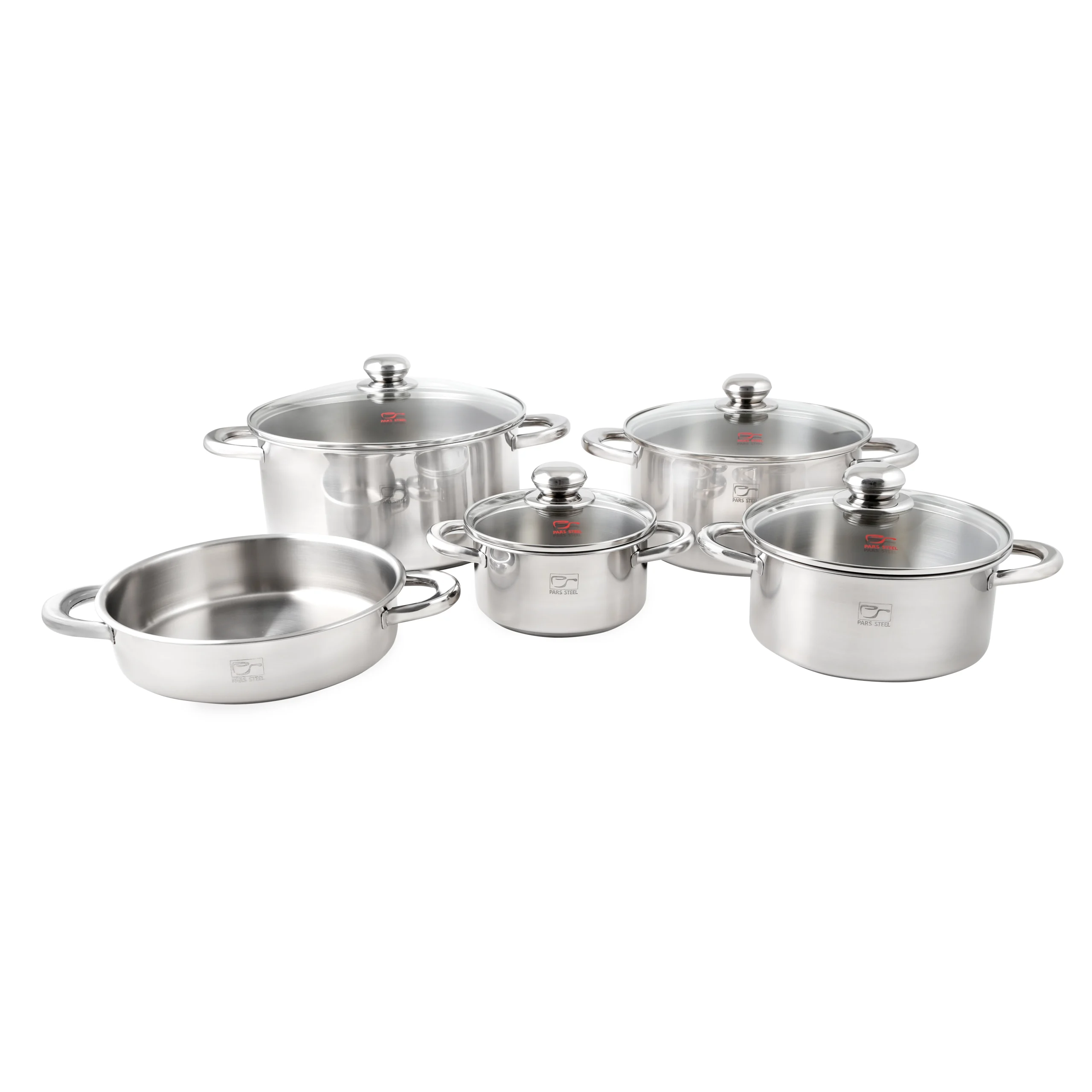 سرویس قابلمه ۹ پارچه پارس استیل شامل ۹ پارچه یعنی چهار قابلمه در سایزهای مختلف و یک ماهیتابه با سایز ۲۴ است. یکی از ویژگی‌های کاربردی این سرویس، امکان استفاده از در قابلمه سایز ۲۴ برای ماهیتابه است. بدنه و دسته‌های تمام استیل ضد خش و ضد زنگ ۱۸/۱۰ این سرویس، مقاومت بالایی در برابر شرایط مختلف آشپزی و شستشو دارند. استفاده از کفه آلومینیومی چند میلی‌متری در کف قابلمه‌ها باعث پخش یکنواخت حرارت و جلوگیری از سوختگی غذا می‌شود.